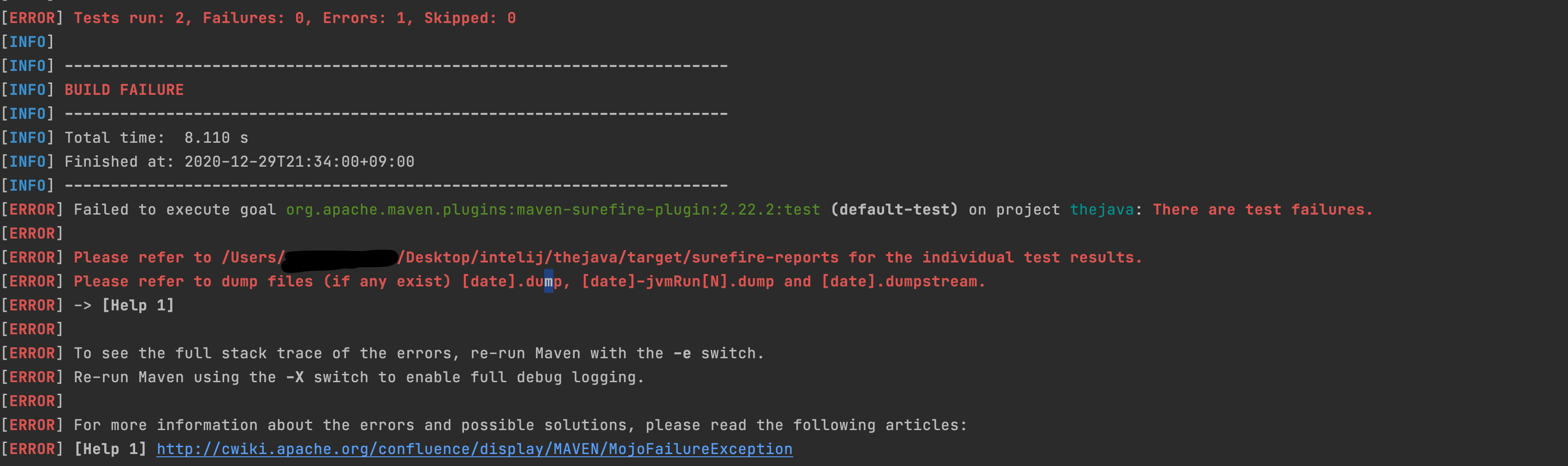 Failed to execute goal org.apache.maven.plugins:maven-surefire-plugin:2.22.2:test
