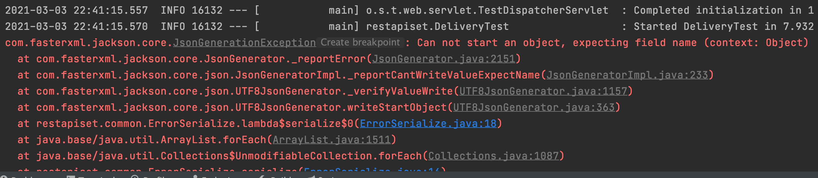 jsonGenerator.writeFieldName("errors");