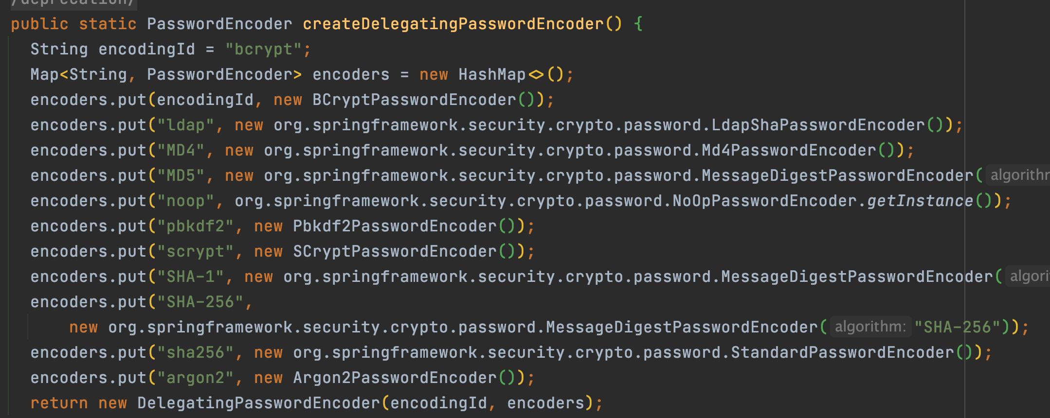 return PasswordEncoderFactories.createDelegatingPasswordEncoder();