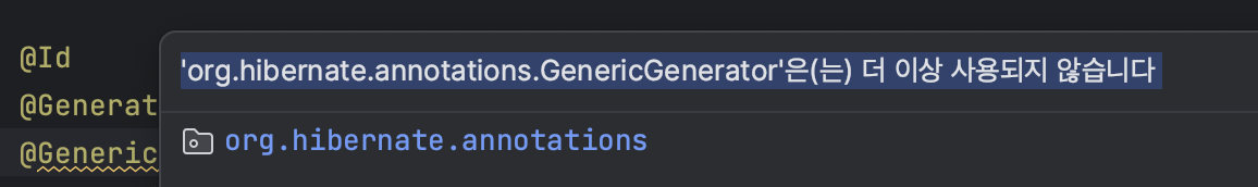 According to the documentation, the following usage is deprecated: @GenericGenerator( name = "UUID", strategy = "org.hibernate.id.UUIDGenerator" ) One