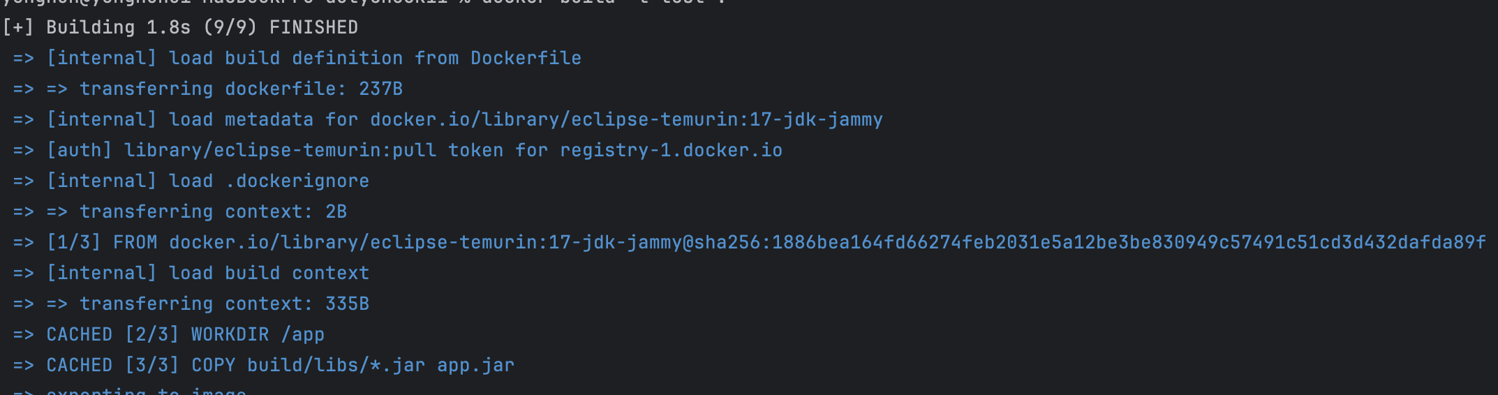 -f Dockerfile: 빌드에 사용할 Dockerfile 지정 (기본값이라 생략 가능)