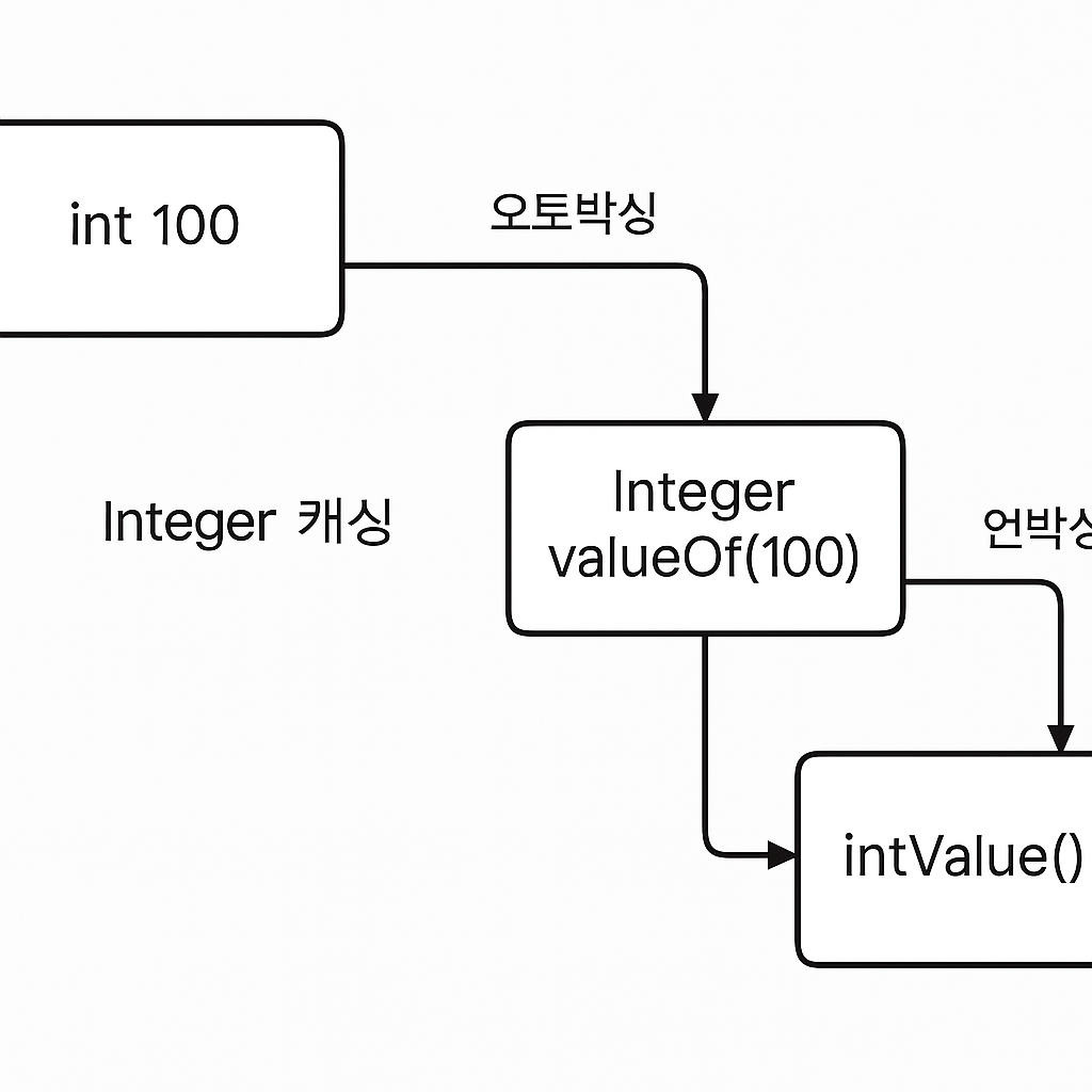 | Integer a = 100; | 오토박싱 → Integer.valueOf(100) | 캐시에서 재사용됨 |