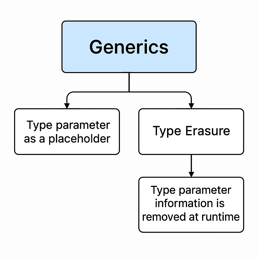 자바의 제네릭은 컴파일 타임에만 존재하고, 런타임에는 타입 정보가 제거되는 타입 이레이저 방식을 따릅니다.