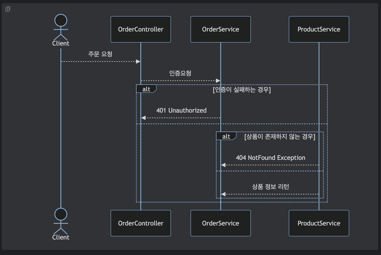 예를 들어, OrderController -> OrderService을 메시지가 보내야 한다면