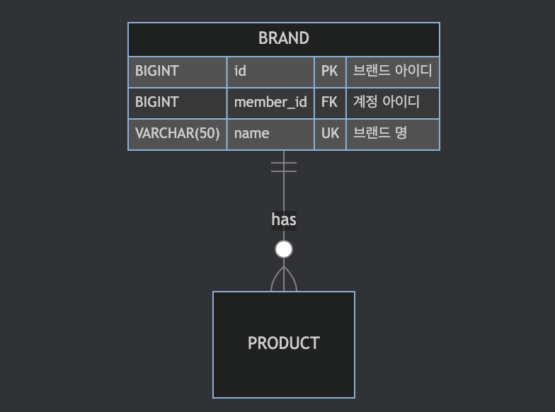 Brand "1" --> "N" Product : 소유