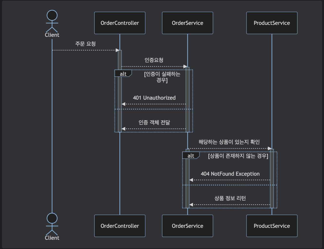 인증 객체를 전달하고 인증이 되면 상품이 존재하는지 확인하고..