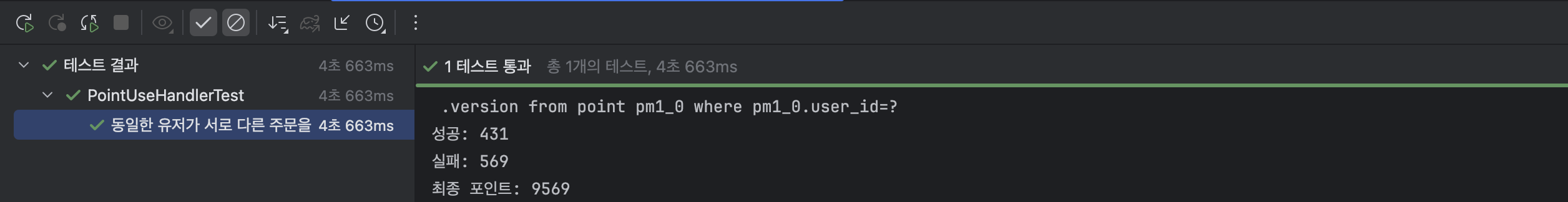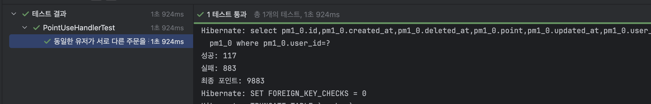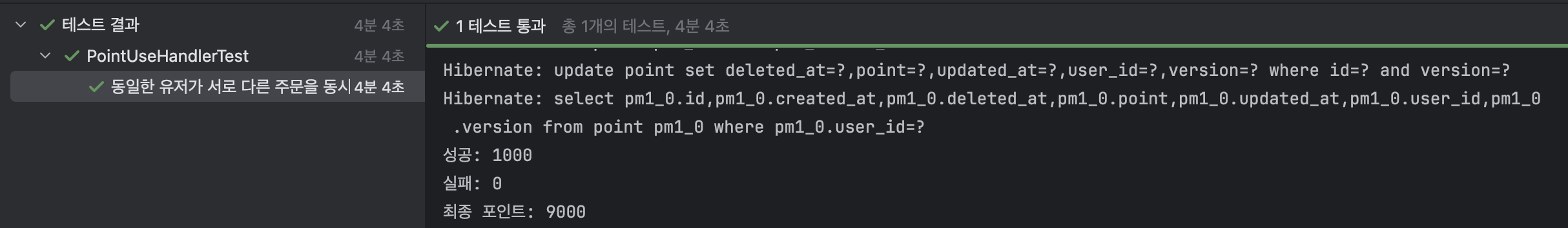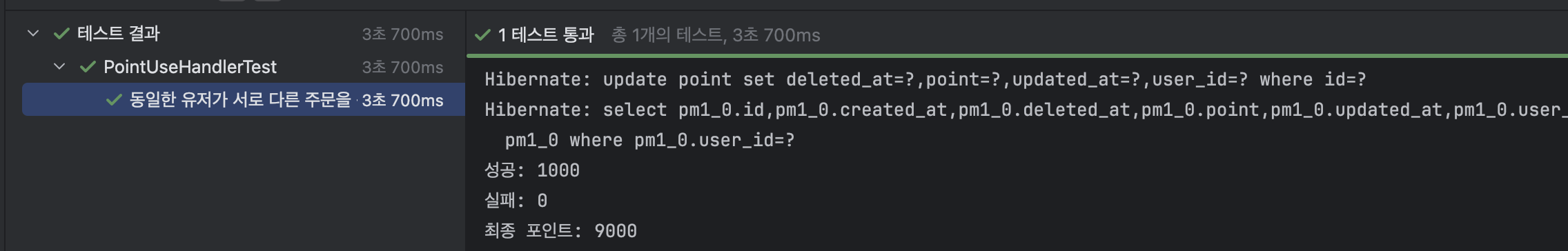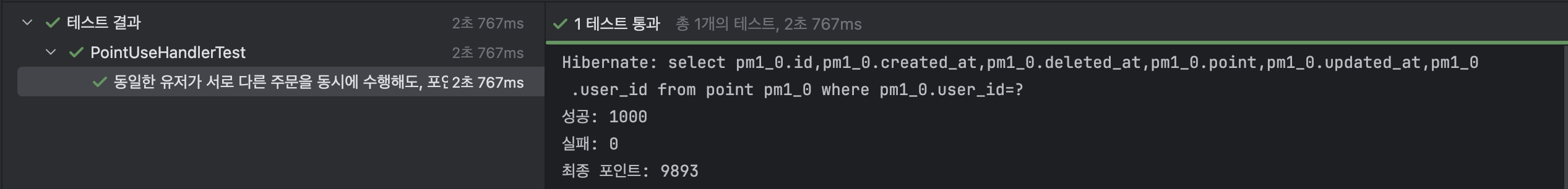 동일한 유저가 서로 다른 주문을 동시에 수행해도, 포인트가 정상적으로 차감되어야 한다.