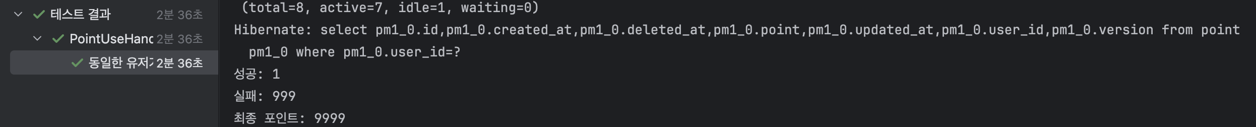 만약, 성공 횟수와 최종포인트를 합쳤을 때, 기존 포인트가 안 나온다면 이는 락이 제대로 걸리지 않음을 뜻한다.