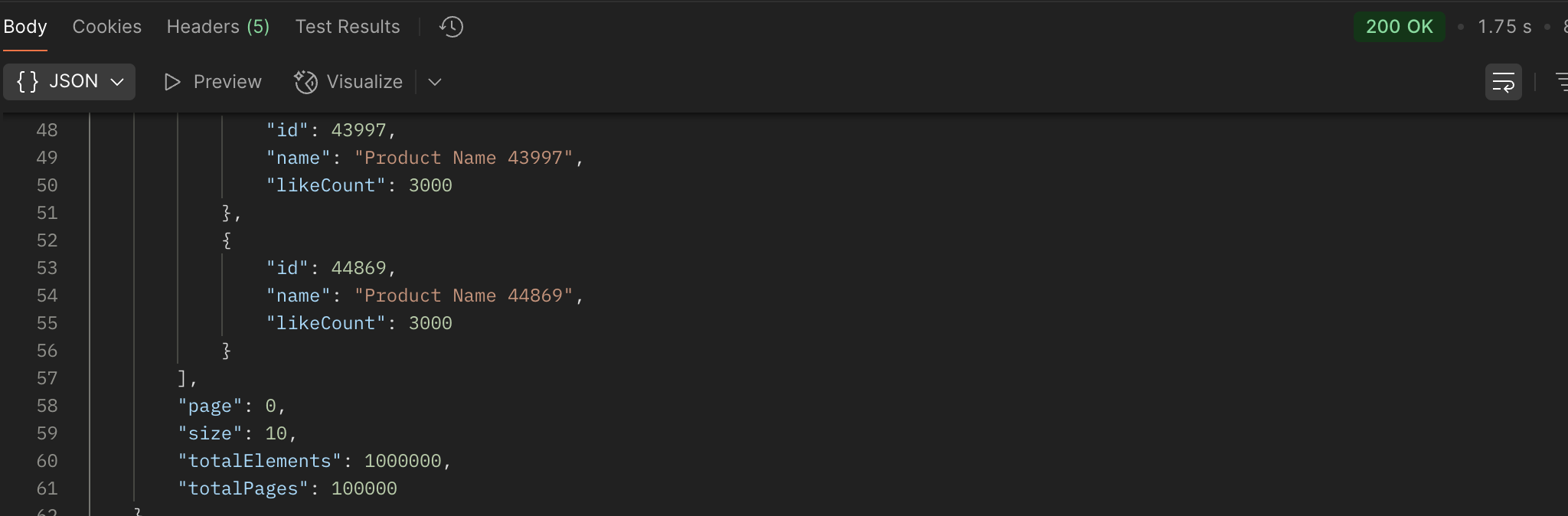 | 8. 캐시 + 인덱스 (totalCount) | 1750 ms | 1760 ms | 1850 ms | 0.36 |
