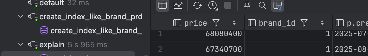 브랜드 Id만 인덱스를 거는 경우는 어떨까? 생각보다 속도는 비슷하게 나오는듯하다.