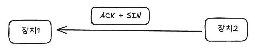 이것이 3-way-handshake입니다. 이와 마찬가지로 TCP를 연결할때도 이 과정이 들어갑니다. 이걸 다시 그려보면 장비1이 클라이언트고