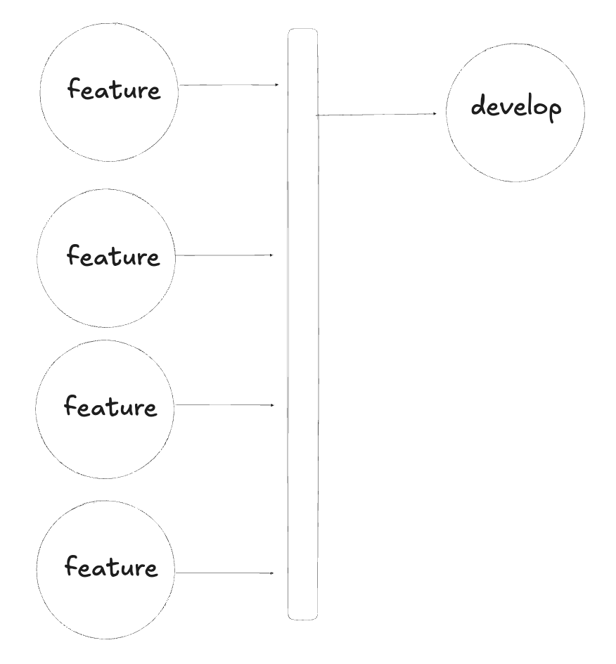 feature 브랜치는 PR을 통해 리뷰와 CI를 거친뒤 develop으로 병합하게 되어집니다.