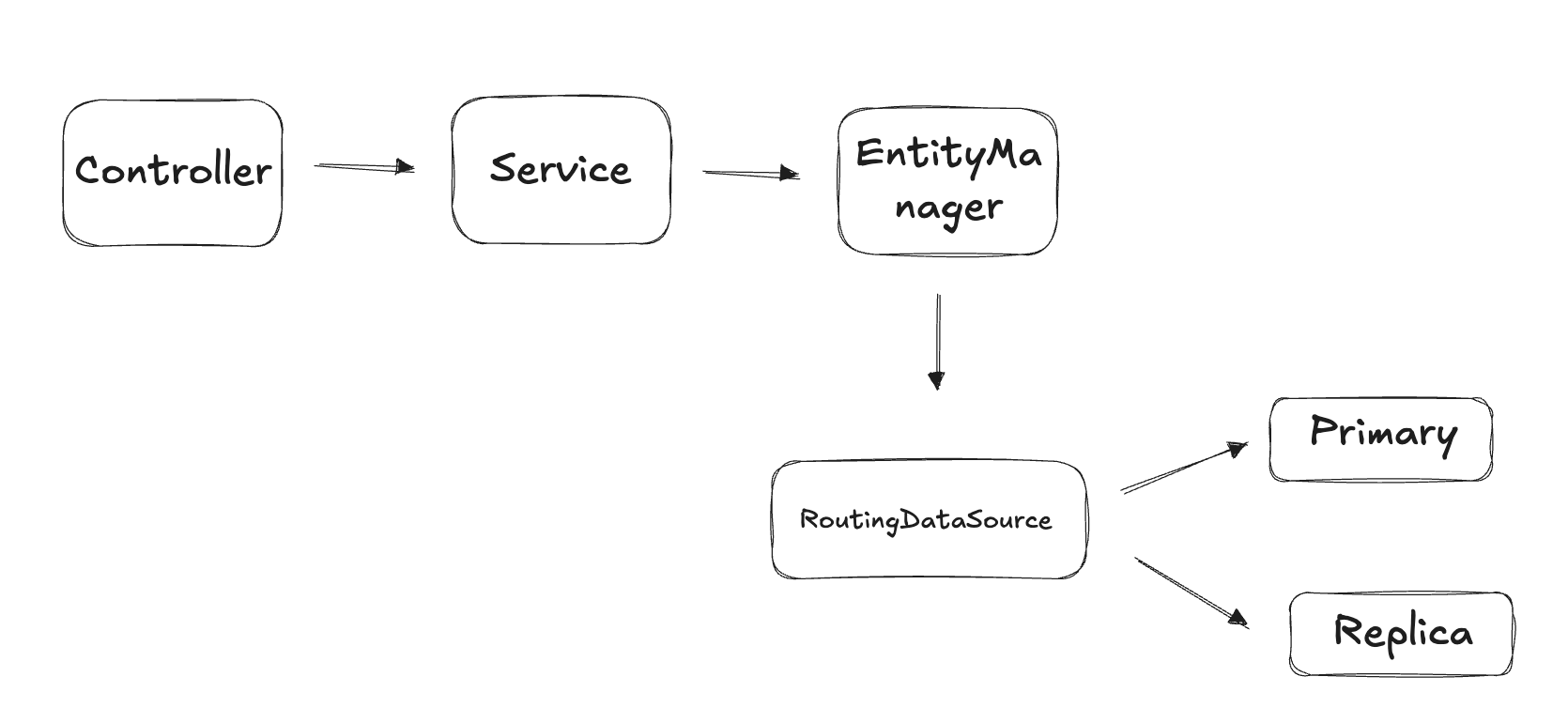 트랜잭션의 readOnly 값에 따라 분기하고, 내부적으로 Primary와 Replica를 연결해두었기 때문입니다.