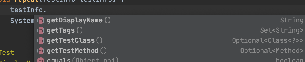 @DisplayName : 테스트 사용자 정의 이름을 표시합니다.
